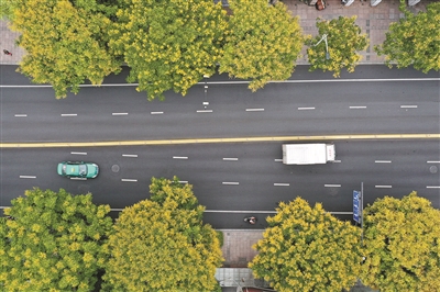 “蒹葭苍苍,白露为霜。”昨日进入“白露”节气,意味着天气逐渐转凉。图为凯旋路沿线的400余棵黄山栾树渐入盛花期,金黄色的小碎花缀满树冠,有的已结出灯笼状蒴果,为整条街区染上了第一抹明丽的秋色。记者 李忠 摄