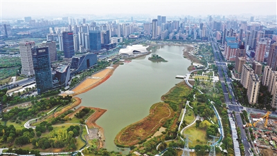 近日,钱塘区金沙湖公园四期工程进入尾声,一座总面积约64.7万平方米,水域面积约31万平方米,集生态、文化、休闲于一体的大型城市综合公园即将整体华彩亮相,成为城市新区风貌的样板区。
