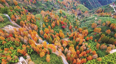 在安吉山川乡海拔800多米高的九亩村里,山谷错落之间藏着5万余棵金钱松,眼下迎来最佳观赏期。从空中俯瞰,在阳光的照耀下,整个山谷都是红彤彤的,让人心旷神怡。