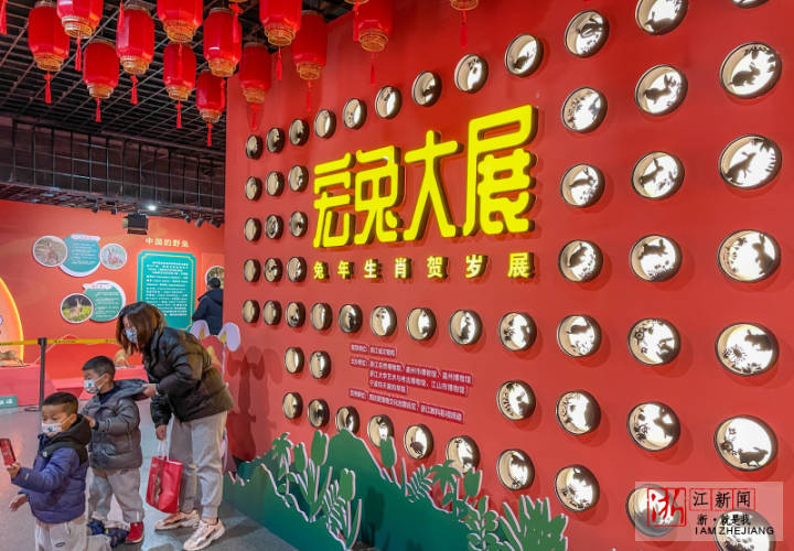 1月17日,浙江自然博物院杭州馆区,“宏兔大展——兔年生肖贺岁展”吸引了许多家长带着孩子来参观。 十二生肖是年俗文化的象征,是中国传统文化重要的形象符号。每到新春佳节来临之际,浙江自然博物院都会推出一场科学、有趣的生肖展以飨观众,到今年已是第十二期。展览主要分为“知兔话兔”“瑞兔献福”与“灵兔呈祥”三个部分,从自然、社会、文化三个方面解读与兔有关的科学人文知识。