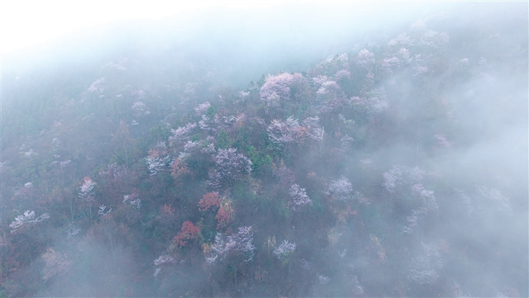 这正是三都野樱花另一个“野”:只生长在海拔300-700米的群山之间,从山腰开始连片生长。