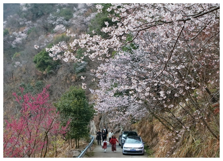 “大杭州的野樱花这几年越来越多,为什么偏偏三都的最让人难忘?答案或许就藏在‘浙西天路’这一路的惊喜里。”徐琬丽说,这里的野樱花长在悬崖边,长在弯道旁,长在转过每一个山坳猝不及防的相遇里。你可以开着车在42道弯里慢慢走,车窗成为流动的画框;也可以停下车走进山林,与最原始、最野性的春日浪漫合影留念。