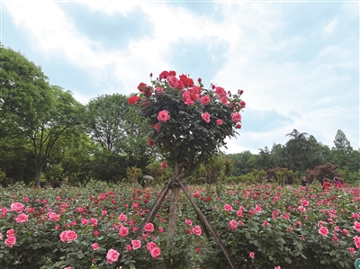 杭州花圃莳花广场的月季花海 记者 余夕雯 摄