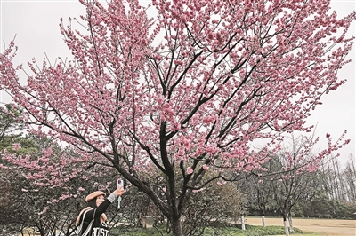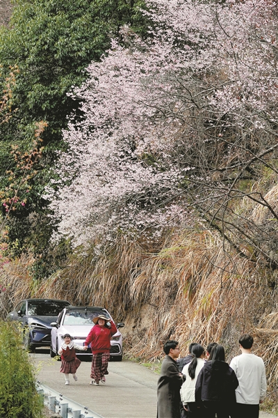 早春时节,杭州各地樱花盛开。近处,九曜山脚的钟花樱、太子湾公园的椿寒樱、花港公园的河津樱、杭州植物园的迎春樱等早樱品种已渐次绽放(左图);远处,建德市三都镇数万亩野樱花也已进入盛花期(右图),漫山遍野的粉色、白色野樱花次第绽放,一片烂漫姿色。