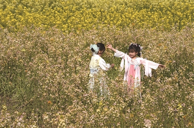 近日,盈丰街道钱江世纪城一处油菜花花海吸引不少市民前去打卡拍照。2.4万平方米的广阔区域内,各种颜色的油菜花竞相绽放,宛如大自然不小心打翻了调色盘。目前各类花卉正值盛放期,预计花期可持续至4月上旬,接下来的半个月将是赏花的最佳时段。图为昨日孩子们在花海中游玩。